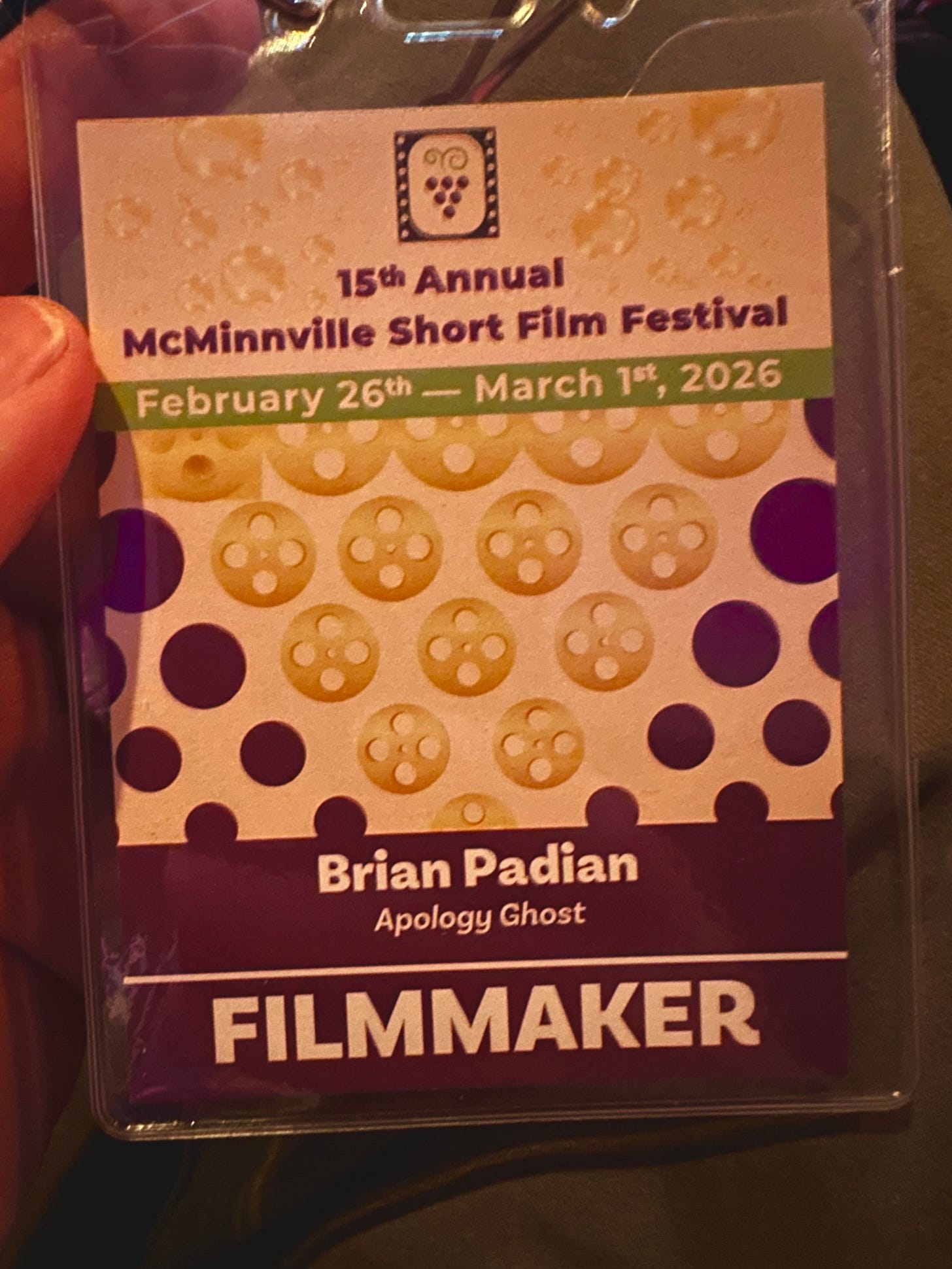 Had an outstanding time at the McMinnville Film Festival for the Oregon premiere of Apology Ghost. Sitting in a darkened theater with perfect projection and sound watching films I have no foreknowlege about is pretty much by dream experience generally speaking but throw in this festival’s loving vibes and detailed attention to filmmaking/filmmakers a mere hour drive from my front door on a couple of unseasonably clear and beautiful days in late February then it’s almost like I died and was inhabiting my aspirational idea of the afterlife.I was able to see 5 blocks of short films and each one was stellar.